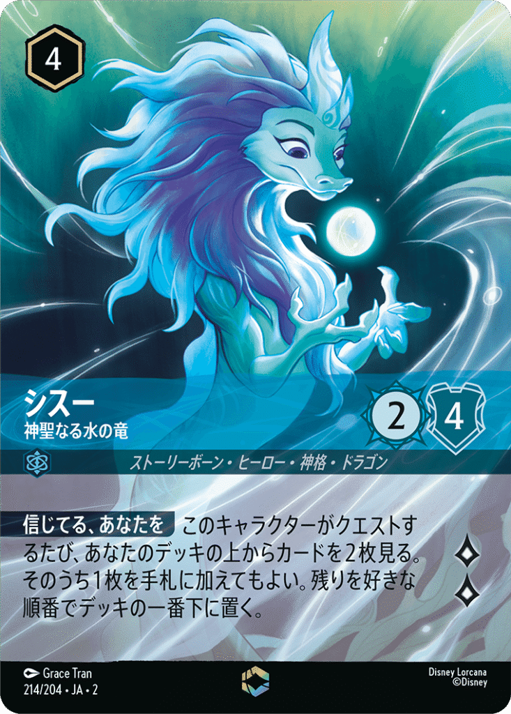 このキャラクターがクエストするたび、あなたのデッキの上からカードを2枚見る。そのうち1枚を手札に加えてもよい。残りを好きな順番でデッキの一番下に置く。
