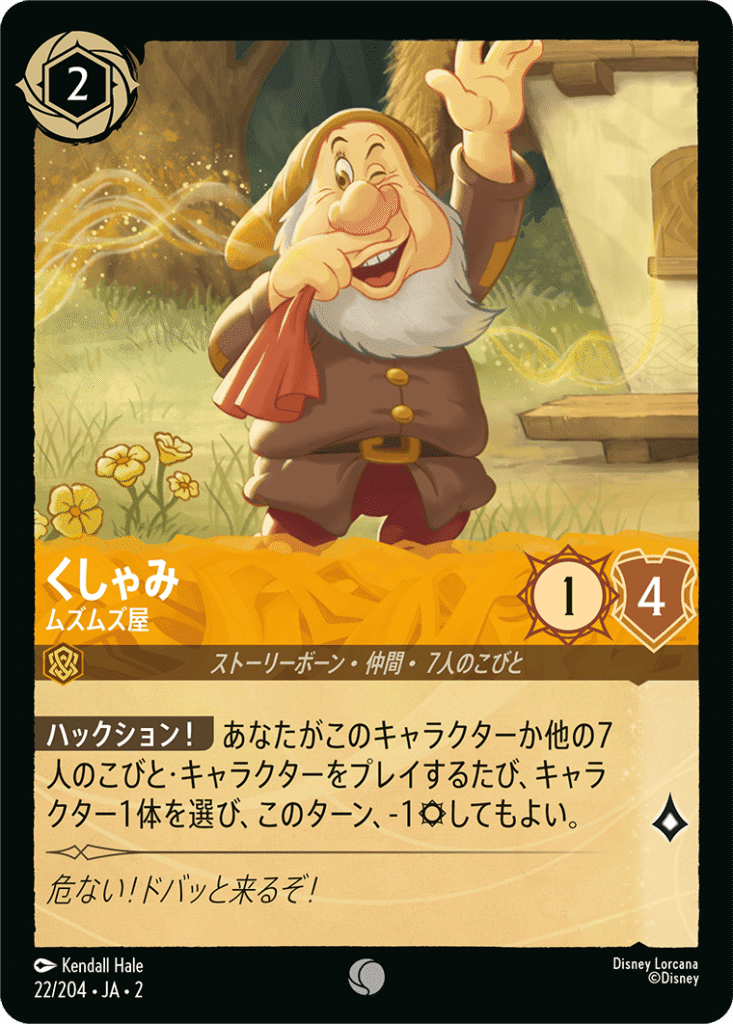 あなたがこのキャラクターか他の7人のこびと・キャラクターをプレイするたび、キャラクター1体を選び、このターン、-1