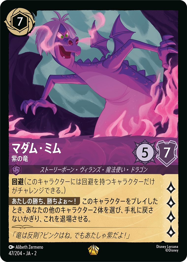このキャラクターをプレイしたとき、あなたの他のキャラクター2体を選び、手札に戻さないかぎり、これを退場させる。
