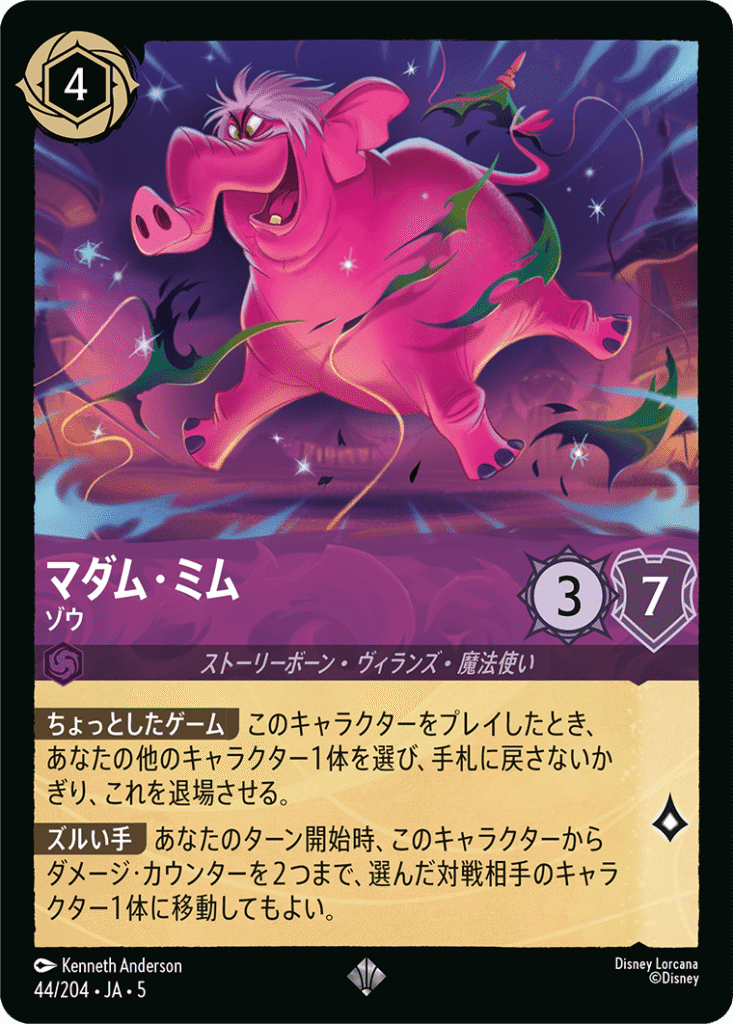 あなたのターン開始時、このキャラクターからダメージ・カウンターを2つまで、選んだ対戦相手のキャラクター1体に移動してもよい。