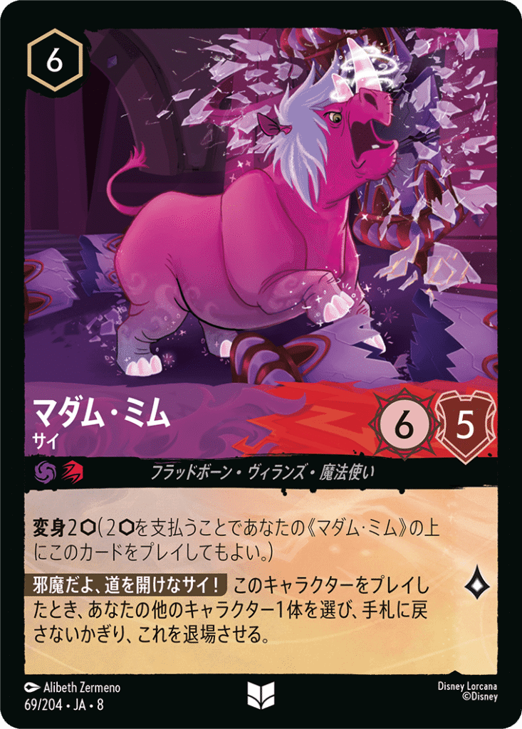 変身2(2を支払うことであなたの《マダム・ミム》の上にこのカードをプレイしてもよい 。)