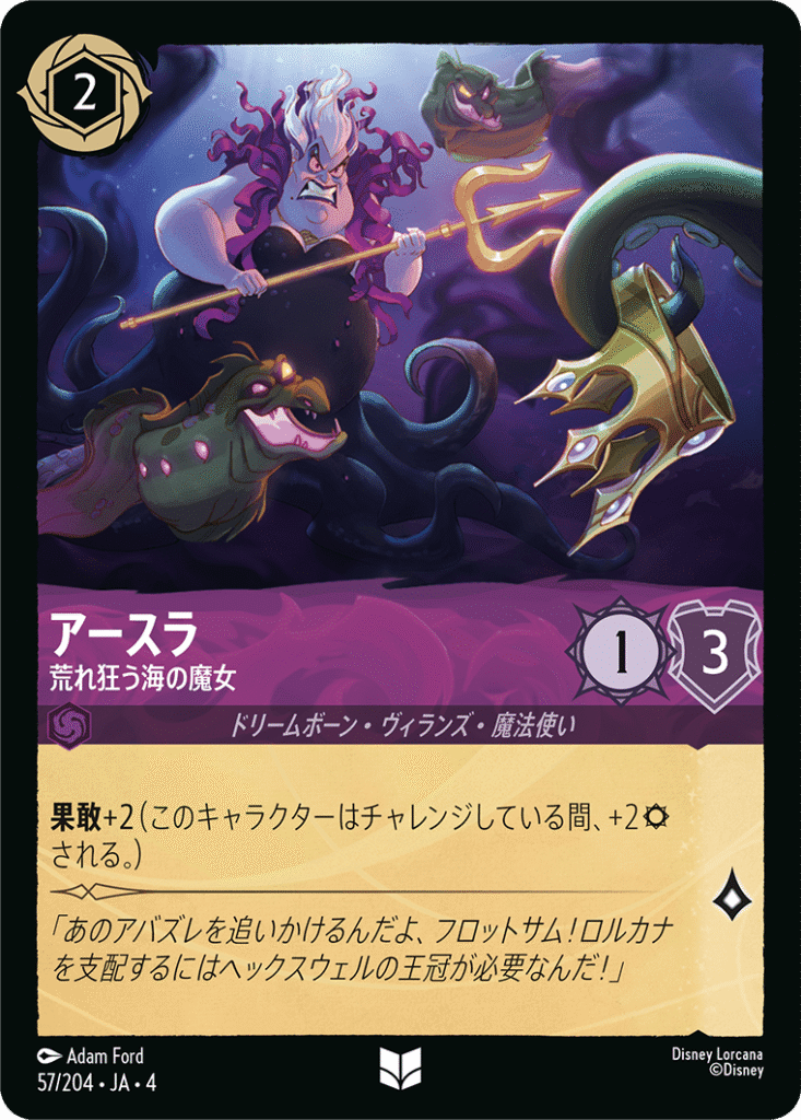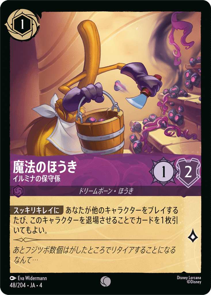 「アメジスト/ルビー」 Disney LORCANA公式HP「ディズニーロルカナ グランプリ 2025 Autumn 京都」、TOP4選手プロフィール!記事 参考 キャラクターカード(41枚) チェルナボーグの従僕ども 邪悪の眷属 4枚 魔法のほうき イルミナの保守係 4枚 マダム・ミム ヘビ 4枚 アースラ 荒れ狂う海の魔女 4枚 マダム・ミム キツネ 4枚 マーリン カニ 3枚 シスー 大胆不敵な来訪者 3枚 マーリン ヤギ 4枚 マーリン ウサギ 4枚 エルサ 第5の精霊 3枚 マウイ みんなの英雄 3枚 スカー 凶悪な謀り屋 1枚 アクションカード(12枚) ファシリエのたくらみ FRIENDS ON THE OTHER SIDE 4枚 乱闘 4枚 準備をしておけ BE PREPARED 4枚 アイテムカード(0枚) ロケーションカード(8枚) 図書室 ベルへの贈り物 4枚 女王の城 鏡の間 4枚 デッキ