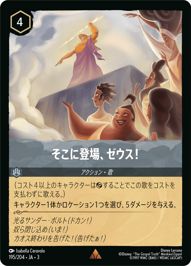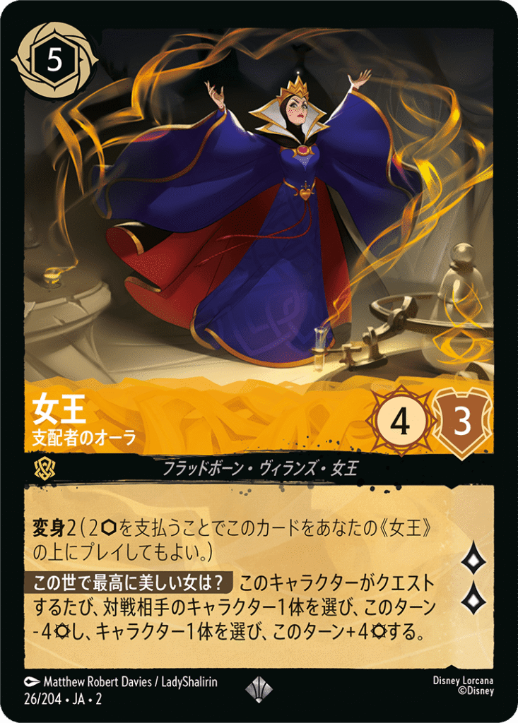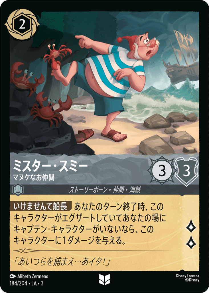 「アンバー/スティール」 Disney LORCANA公式HP「ディズニーロルカナ グランプリ 2025 Autumn 京都」、TOP4選手プロフィール!記事 参考 キャラクターカード(44枚) シンデレラ 舞踏会の花形 4枚 女王 権威ある君主 4枚 デイジーダック ドナルドの彼女 4枚 ピグレット プー海賊団の船長 4枚 アースラ ヴァネッサ 4枚 ミスター・スミー マヌケなお仲間 4枚 アリエル 麗しい歌姫 4枚 ローレンス 妬み深い従者 3枚 ピート リングのレフェリー 4枚 ラプンツェル いやしの賜物 4枚 ナヴィーン王子ノキオ ウクレレ奏者 1枚 女王 支配者のオーラ 4枚 アクションカード(16枚) 持つんだ熱い心 4枚 風よ吹け 4枚 そこに登場、ゼウス! 4枚 ホール・ニュー・ワールド A WHOLE NEW WORLD 4枚 アイテムカード(0枚) ロケーションカード(0枚) デッキ