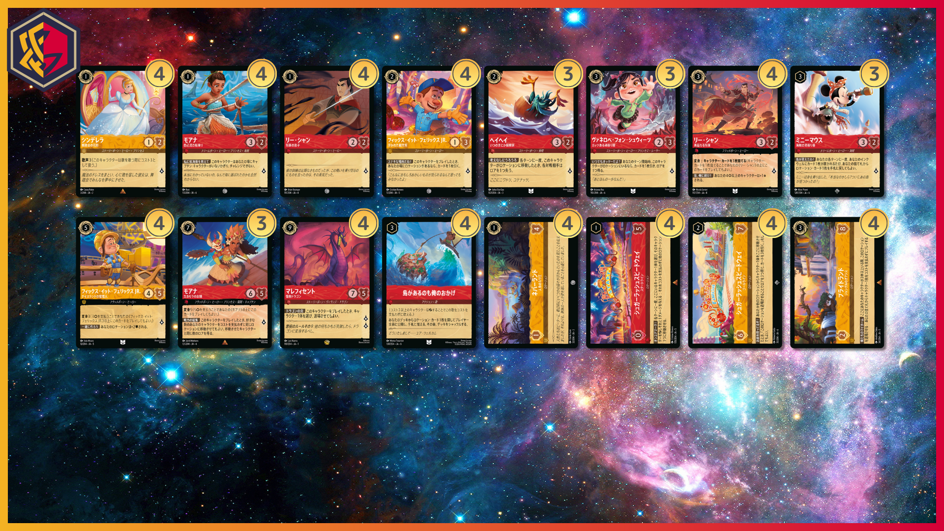 「アンバー・ルビー シュガー・ラッシュ・スピードウェイ」 ディズニーロルカナ【公式】【【対戦】TCGプロとロルカナ開発者がアグロ対決! 原根健太vsスティーブ・ワーナー|大いなるアズライト】 紹介 キャラクター 40枚 4枚 4枚 4枚 4枚 3枚 3枚 4枚 3枚 4枚 3枚 4枚 アクション 4枚 4枚 アイテム 0枚 ロケーション 16枚 4枚 4枚 4枚 4枚 デッキ